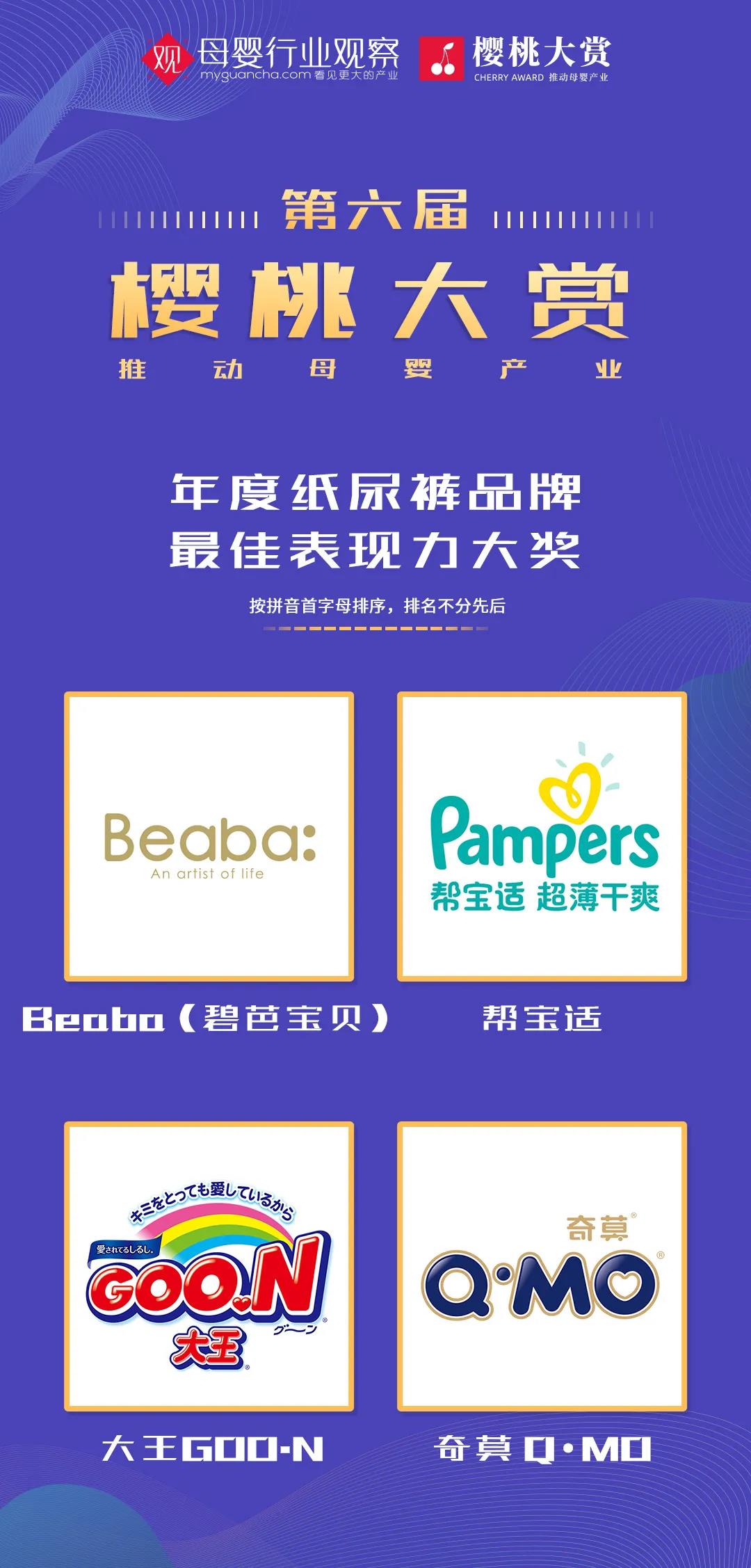 奇莫Q·MO荣获第六届樱桃大赏“年度纸尿裤品牌最佳表现力大奖”