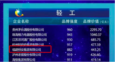 443亿!恒安再登中国品牌价值榜,位列轻工行业前五!