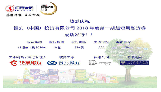 恒安发行本年度首期10亿元超短期融资券