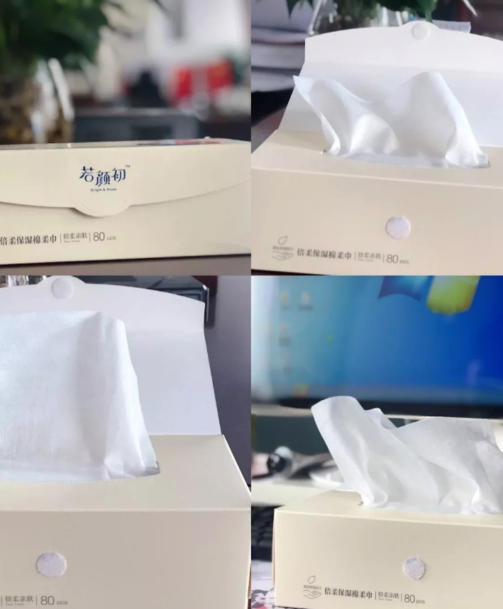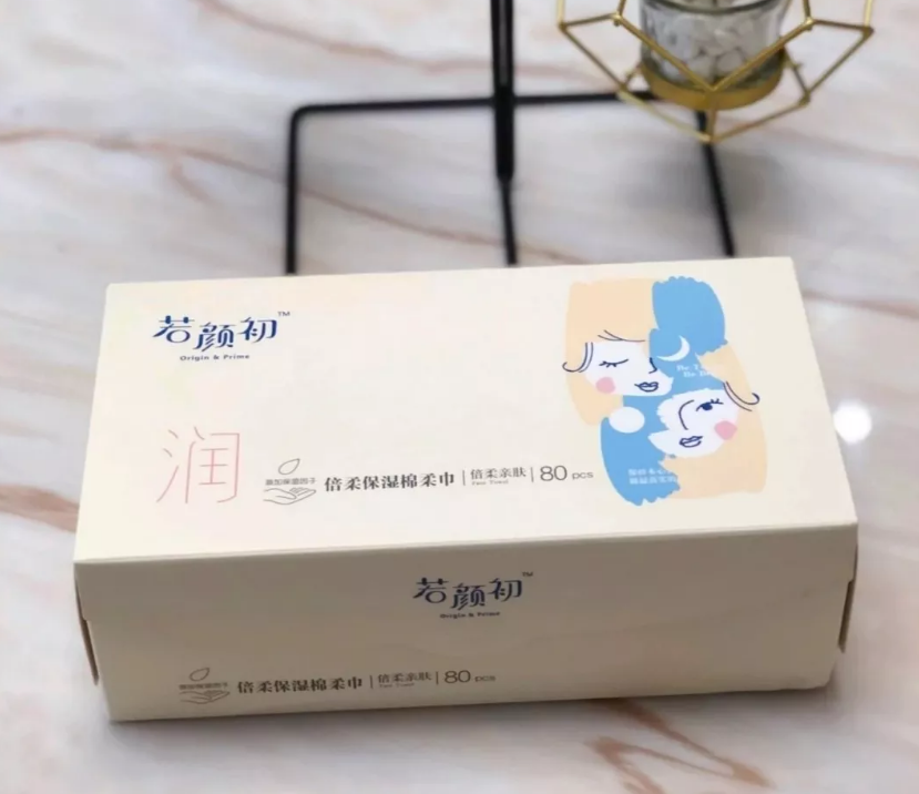 面膜强调安全健康,若颜初其他产品也是如此。“基础护理方面更强调安全、健康,包括一次性化妆棉等产品,我们都在包装上进行优化升级,比市场上的产品更加关注细菌污染等问题。”黄小青举例,以纸盒装保湿棉柔巾为例,若颜初进行了魔术贴开合设计,同时还有防护膜开口,保证灰尘等异物不污染贴面使用的产品。